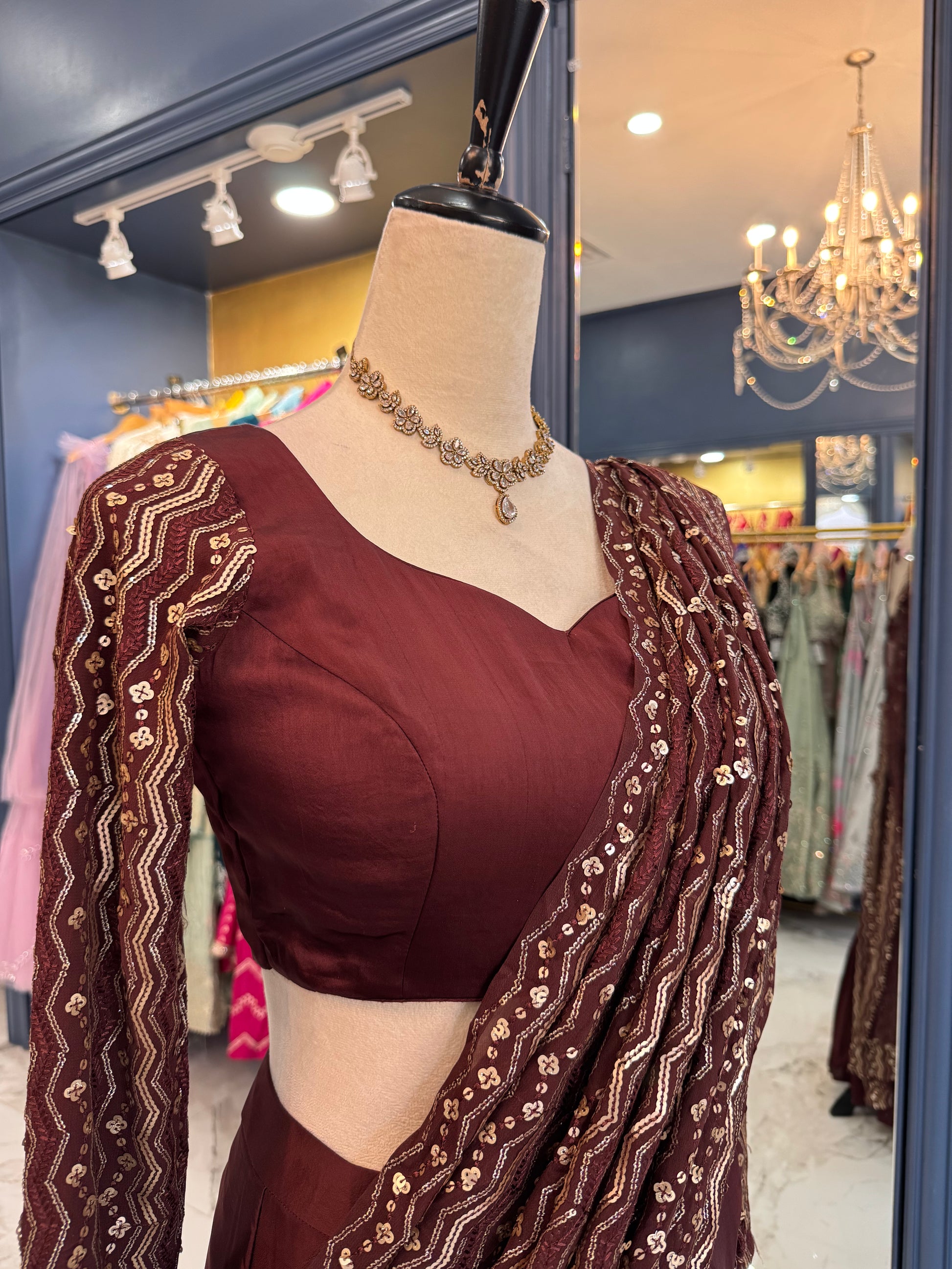 - The blouse features intricate sequin embellishments with a flattering neckline and delicate waist detailing that enhances the silhouette.